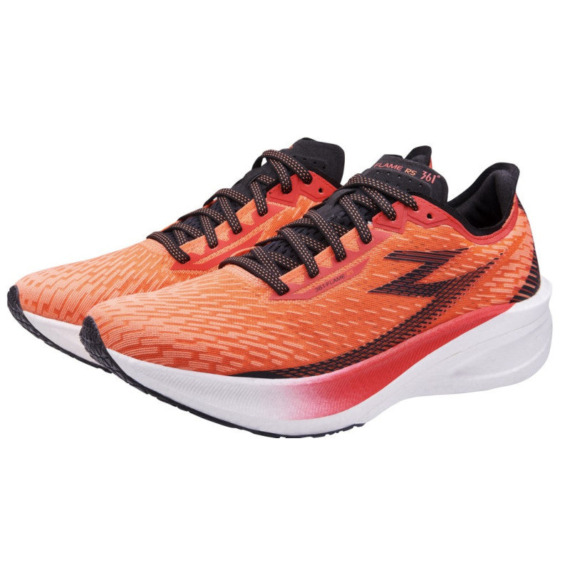 Sulla scia del successo della 361° Flame (vincitrice della medaglia di bronzo alle Olimpiadi di Tokyo 2022), arriva la 361° FlameRS aggiornata. Questa scarpa da corsa leggera e pronta per la gara è il modello più recente, progettato per inseguire i record. Dotata di una piastra in carbonio a tutta lunghezza che lavora in tandem con la nuova tecnologia dell'intersuola in PU, la 361° FlameRS offre una corsa scattante e reattiva. Il modello è in grado di ottimizzare l'economia di corsa durante tutta l'andatura, sfruttando la piastra in fibra di carbonio per spingere il corridore in avanti senza sforzo e consentendogli di risparmiare più energia mantenendo il ritmo nelle fasi successive della corsa.