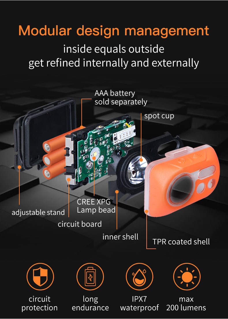 Grado di impermeabilità IPX7, la lente e il guscio sono formati integralmente e impermeabili.